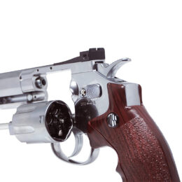 Revólver de Pressão Co2 Rossi, tem um grande realismo e um belo design, fabricado em full metal e com empunhadura em polímero. Empunhadura anatômica, oferece grande conforto com uma pegada bem firme. O Revólver Rossi tem um municiamento bem realista! Ele acompanha 6 réplicas de cápsulas, onde são inseridas uma esfera de aço em cada cápsula e depois as cápsulas podem ser inseridas uma a uma no tambor do Revólver W702S. Para adicionar as cápsulas no tambor, o W702S acompanha um JetLoader, que facilita o carregamento do revólver, inserindo as 6 cápsulas simultaneamente no tambor. O Revólver Rossi também acompanha dois trilhos picatinny de 22mm que podem ser instalados de forma prática e rápida, um na parte superior e o outro na parte inferior. Possui ação simples e dupla, que agrega maior realismo ainda para o W702S. Para sua segurança, possui trava do gatilho manual, localizada ao lado do tambor. Possui massa de mira fixa e sua alça de mira é ajustável. O W702S é um revólver Co2, ele utiliza cilindro 12g Co2 e tem um excelente autonomia, chegando a cerca de 100 disparos por cilindro.